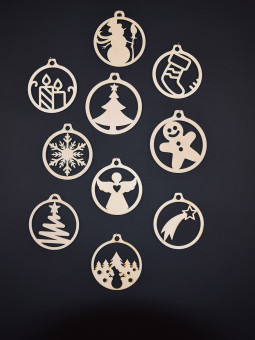 Un Natale naturale e artigianale. Eleganti decorazioni natalizie realizzate in dischi di legno naturale, finemente intagliate a laser con motivi festivi. Ogni pezzo unisce il calore del legno alla precisione del traforo moderno, creando un ornamento leggero e raffinato per il tuo albero, ghirlande o pacchi regalo. Un'alternativa ecosostenibile alle classiche palline in plastica.